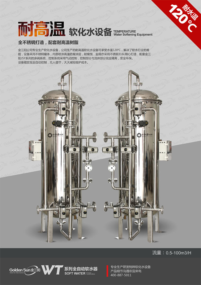 金三陽公司專業(yè)生產(chǎn)軟化水設(shè)備,公司生產(chǎn)的耐高溫軟化水設(shè)備可承受水溫120℃,解決了軟水行業(yè)的難題,設(shè)備采用不銹鋼罐體,內(nèi)部噴涂高溫防腐涂層,耐腐蝕,鹽箱亦采用不銹鋼316L精心打造,配套金三陽JSY系列的多閥系統(tǒng),控制系統(tǒng)采用氣動(dòng)控制,控制部分與流體部分隔離,安全環(huán)保。 JSY系列耐高溫軟化水設(shè)備能實(shí)現(xiàn)全自動(dòng)控制,無人值守,大大減輕維護(hù)成本。 關(guān)于更多JSY系列耐高溫軟化水設(shè)備信息歡迎與我們的工程師溝通18932295779(王)